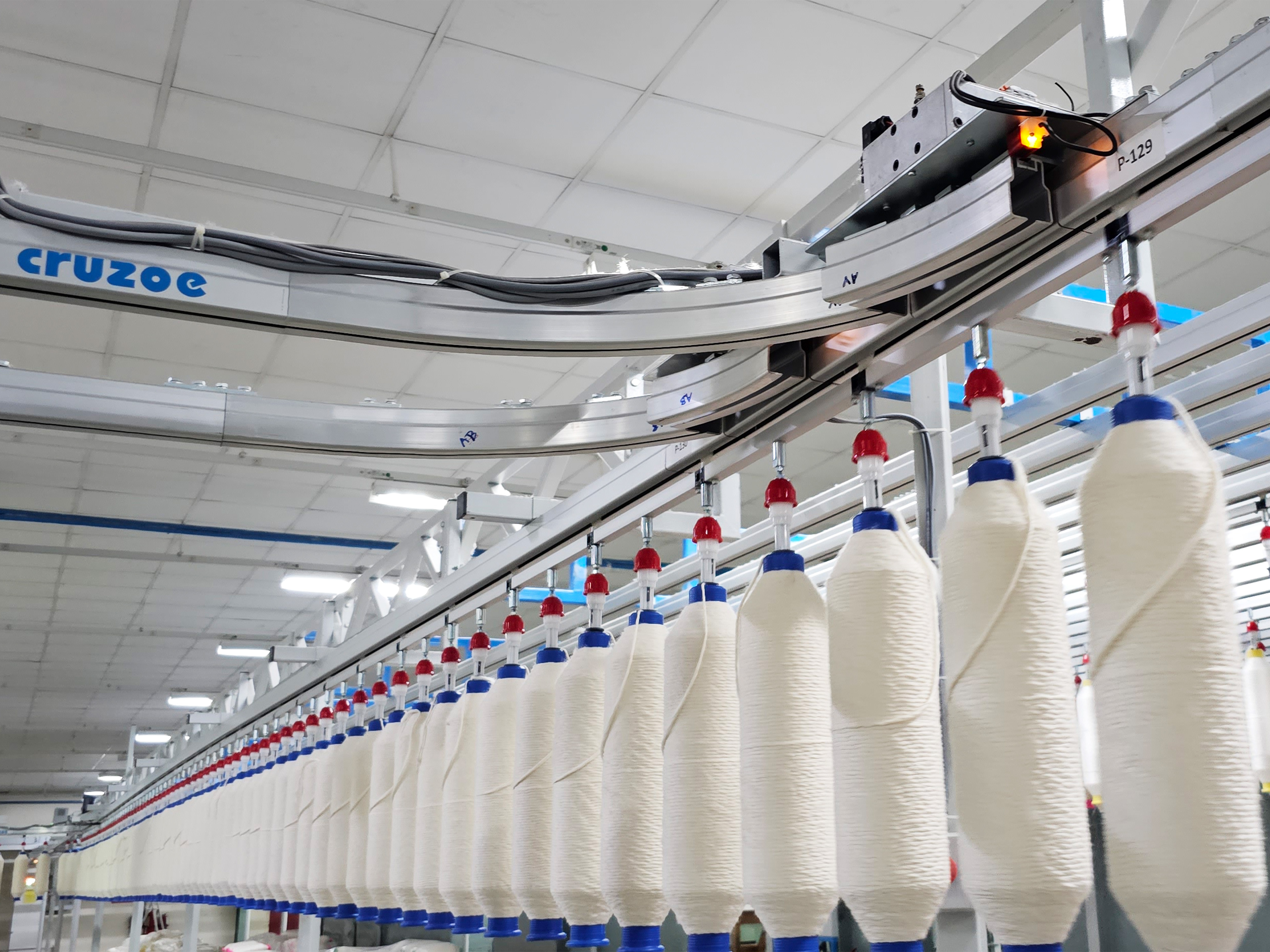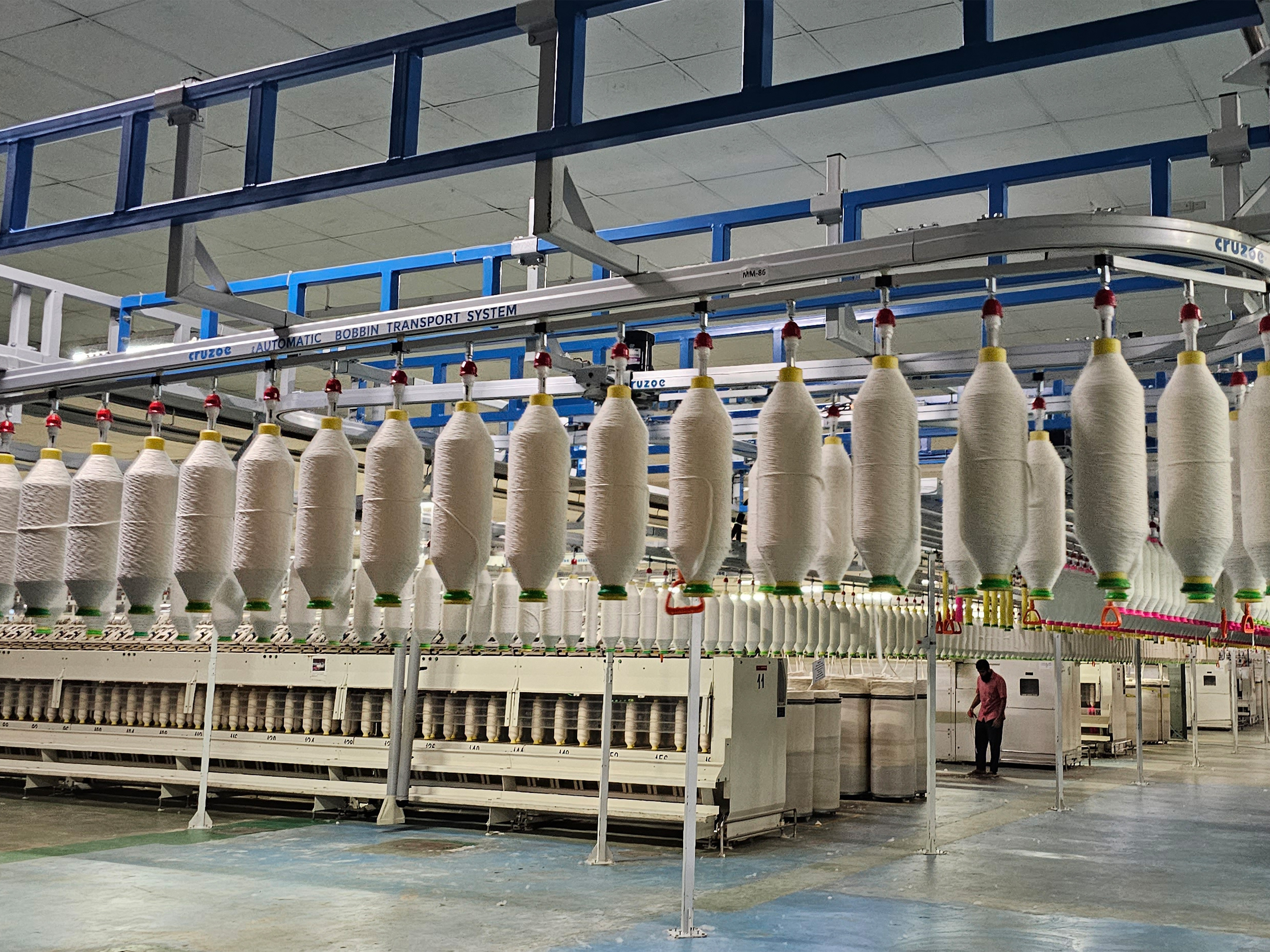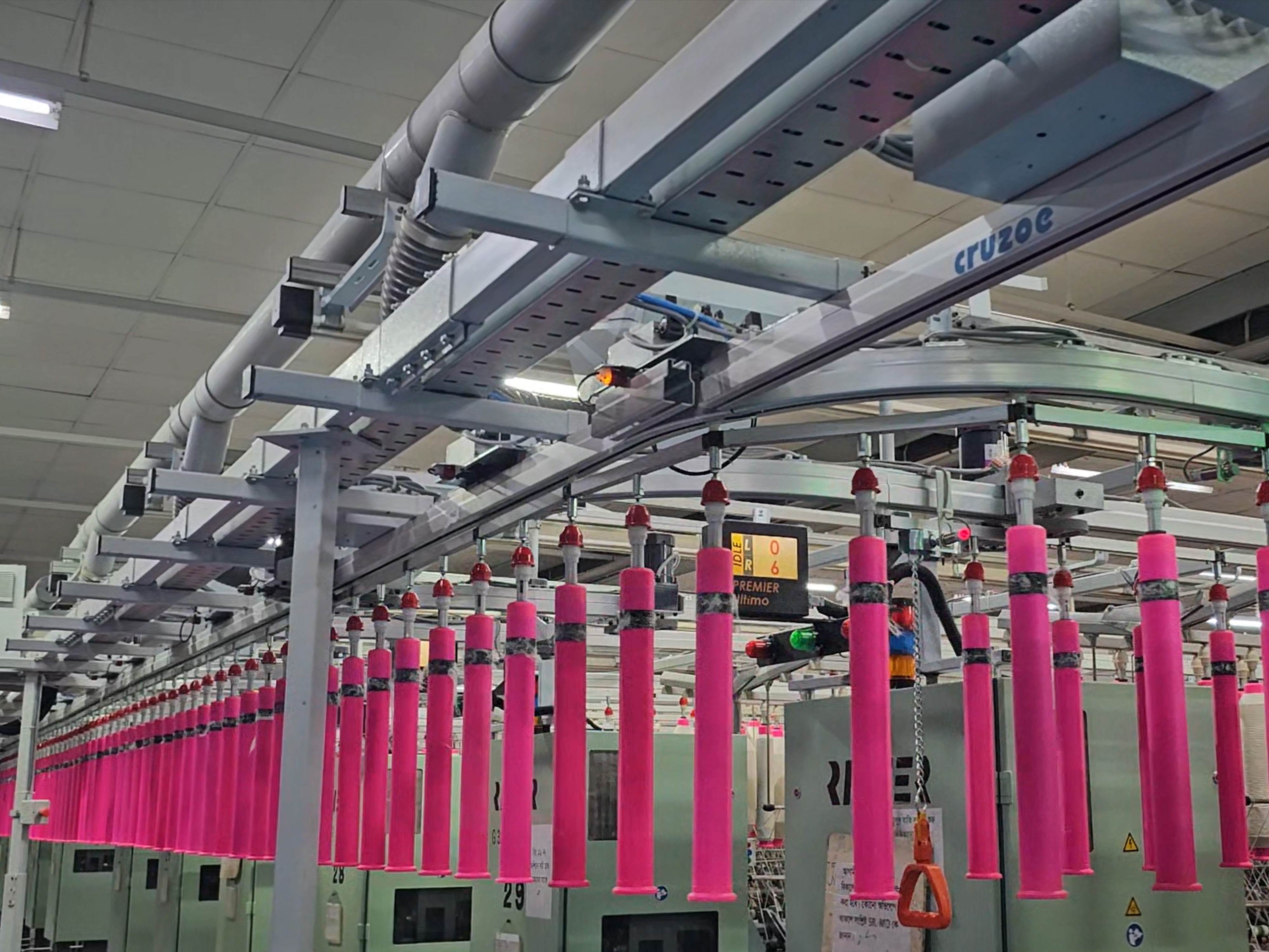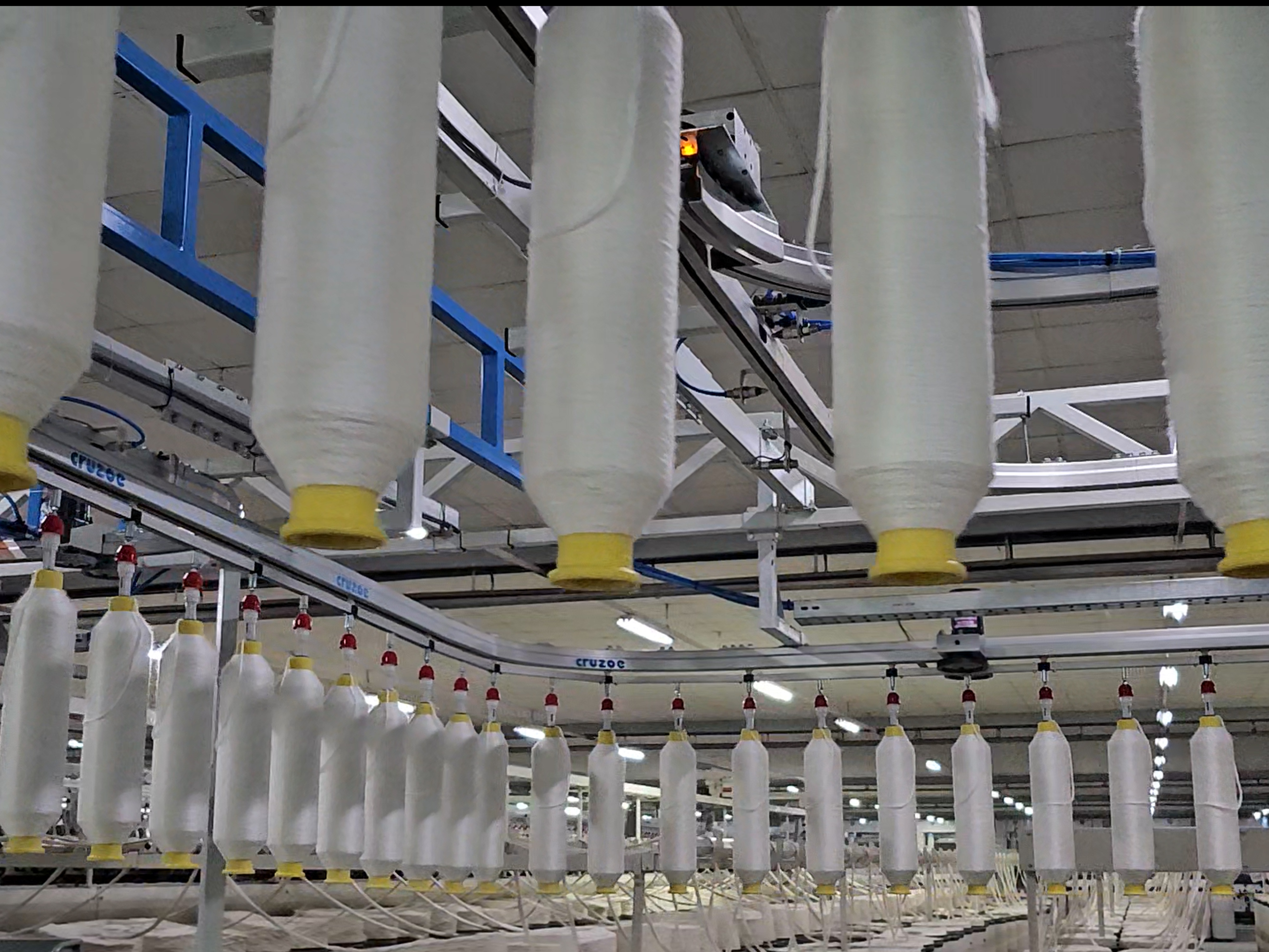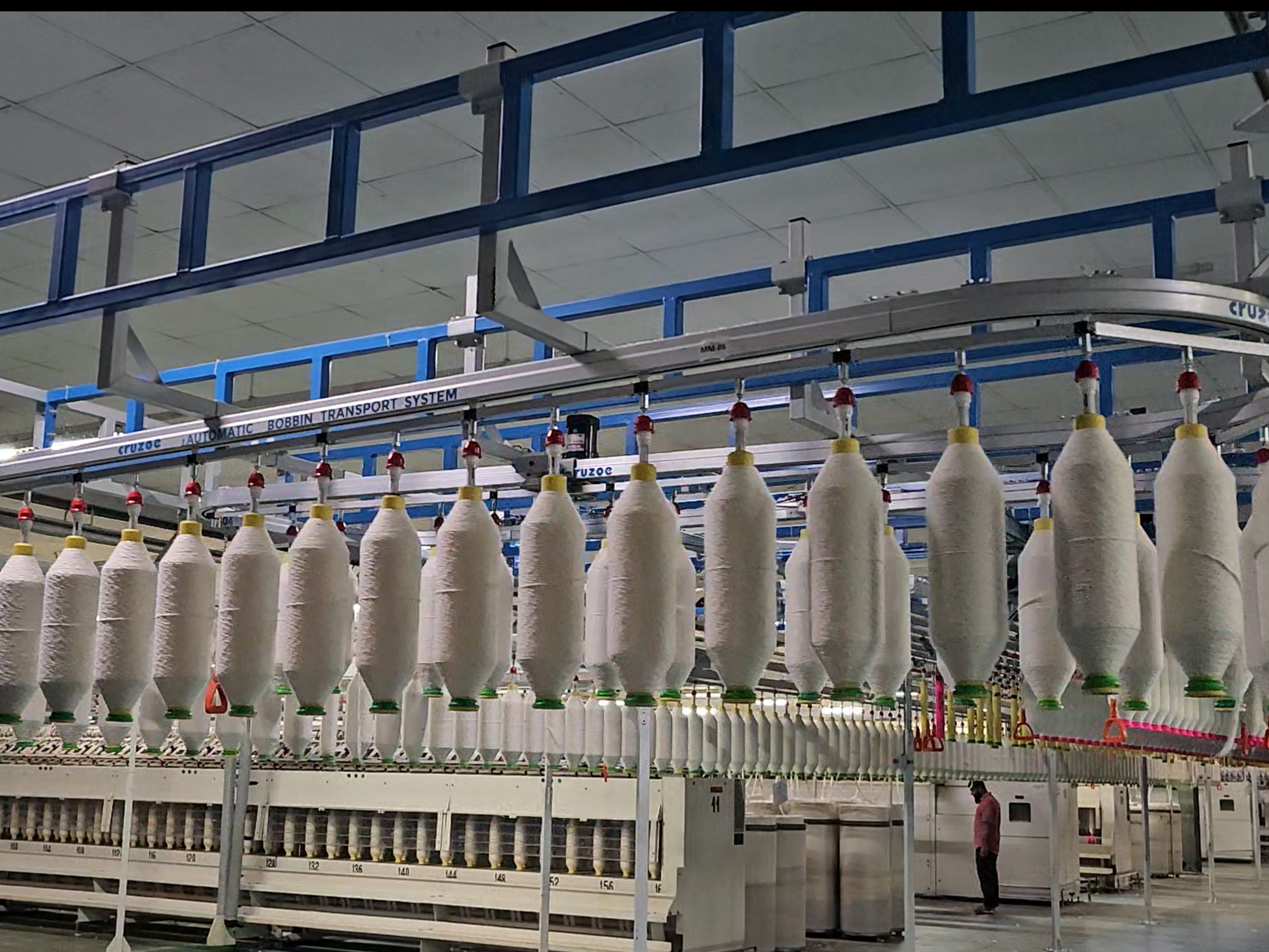 This system uses overhead transport and hence the ground floor is free from movement of trolleys and additional manpower to push the trolleys. It helps to improve quality of the yarn produced by reducing damages of the outer layer of the bobbins due to manual handling and trolley loading. .