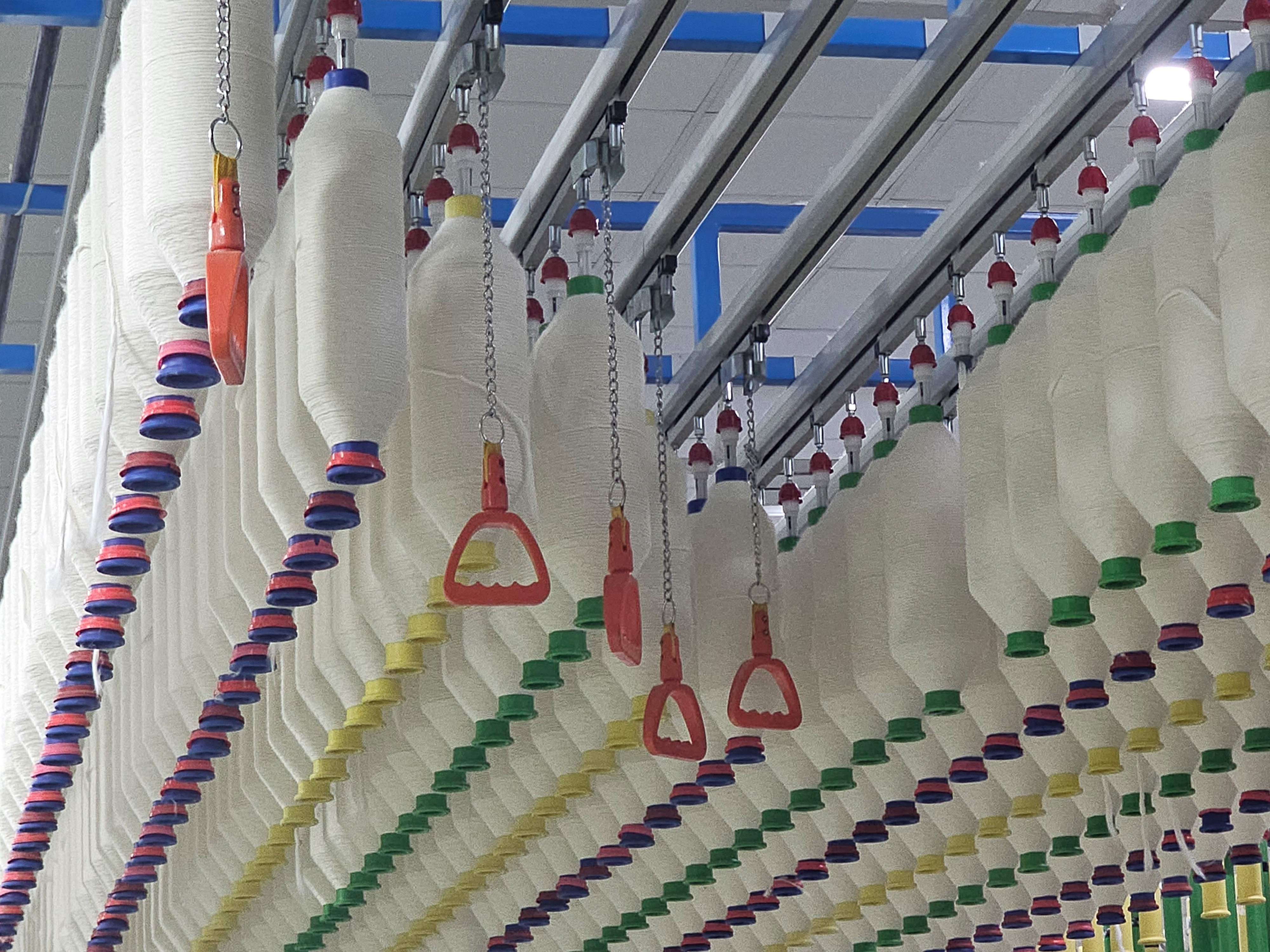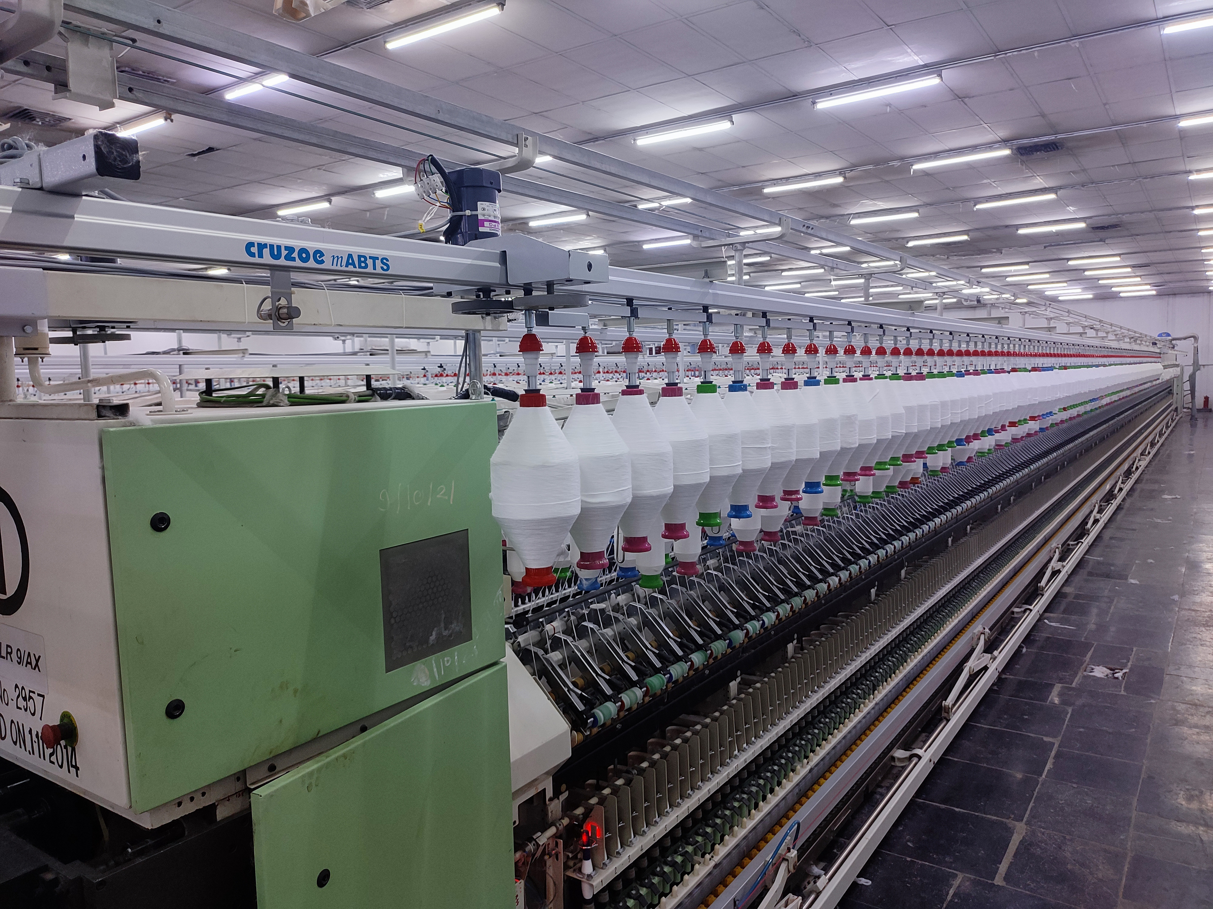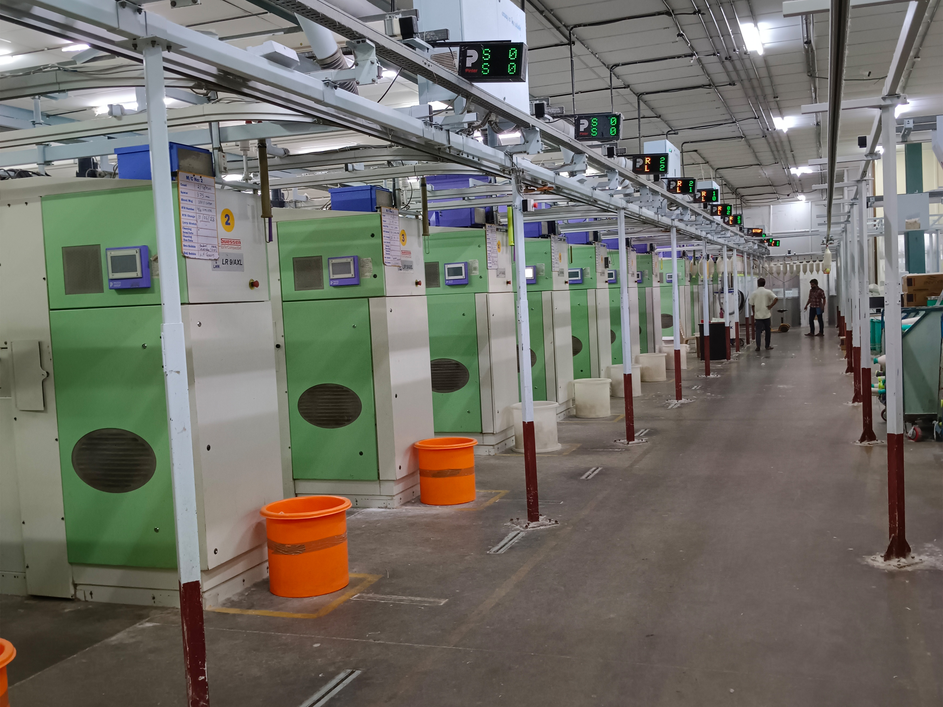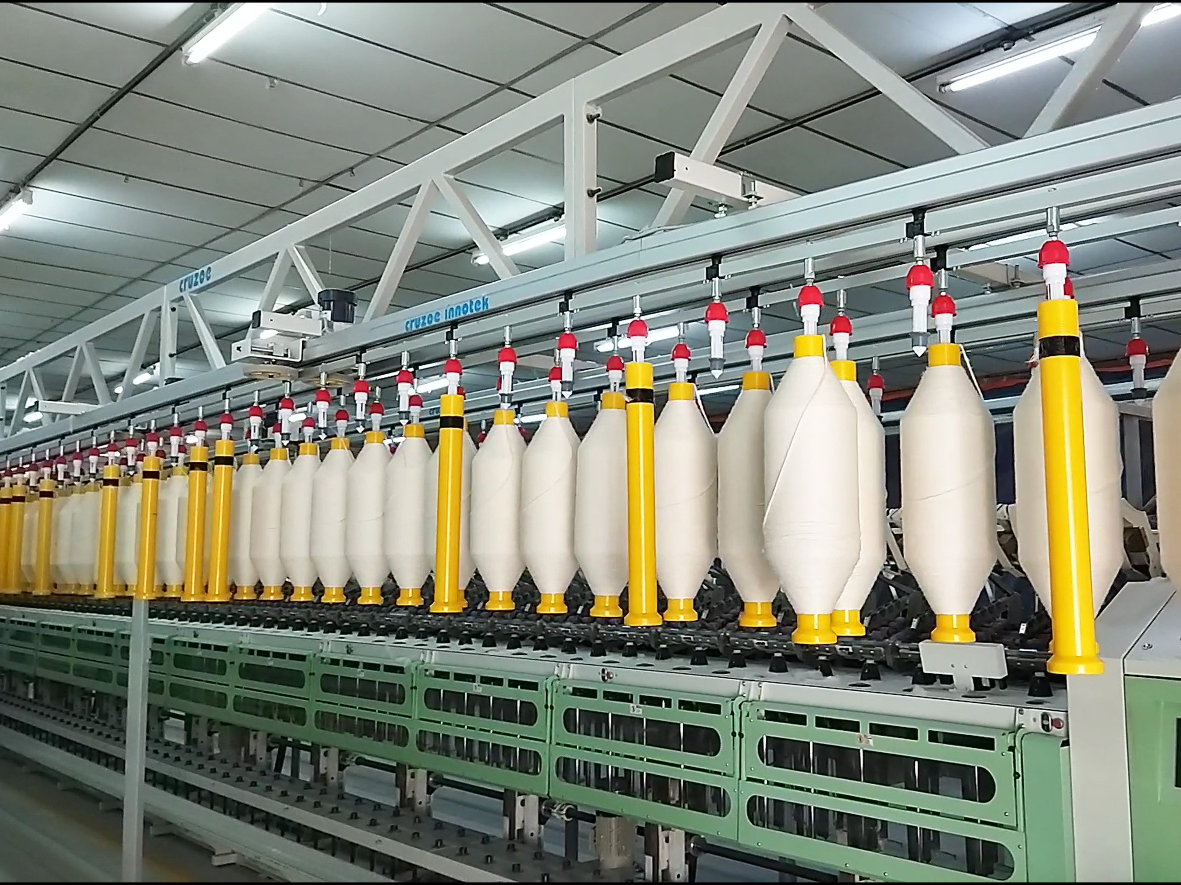 This system uses overhead transport and hence the ground floor is free from movement of trolleys and additional manpower to push the trolleys. It helps to improve quality of the yarn produced by reducing damages of the outer layer of the bobbins due to manual handling and trolley loading. .