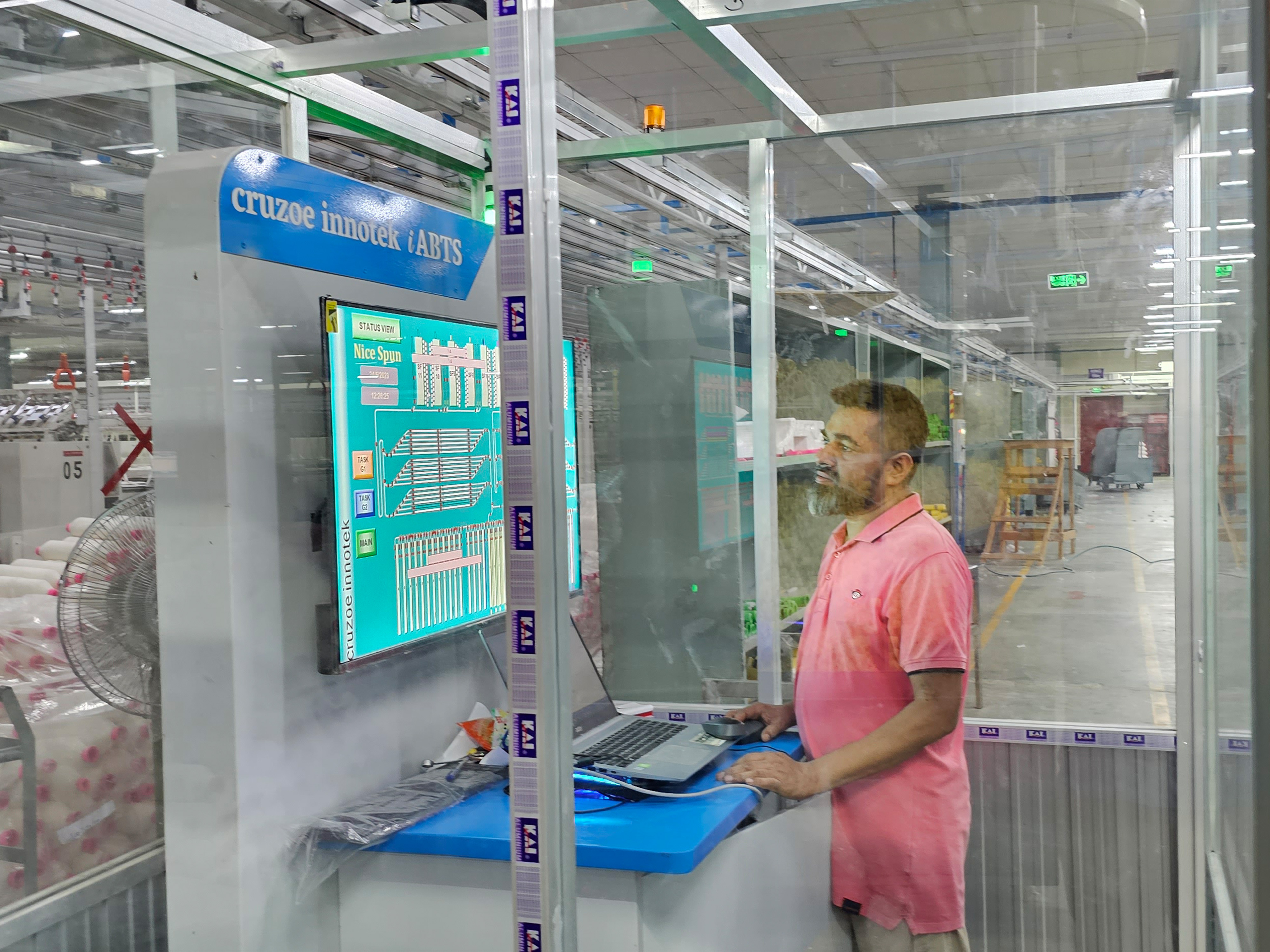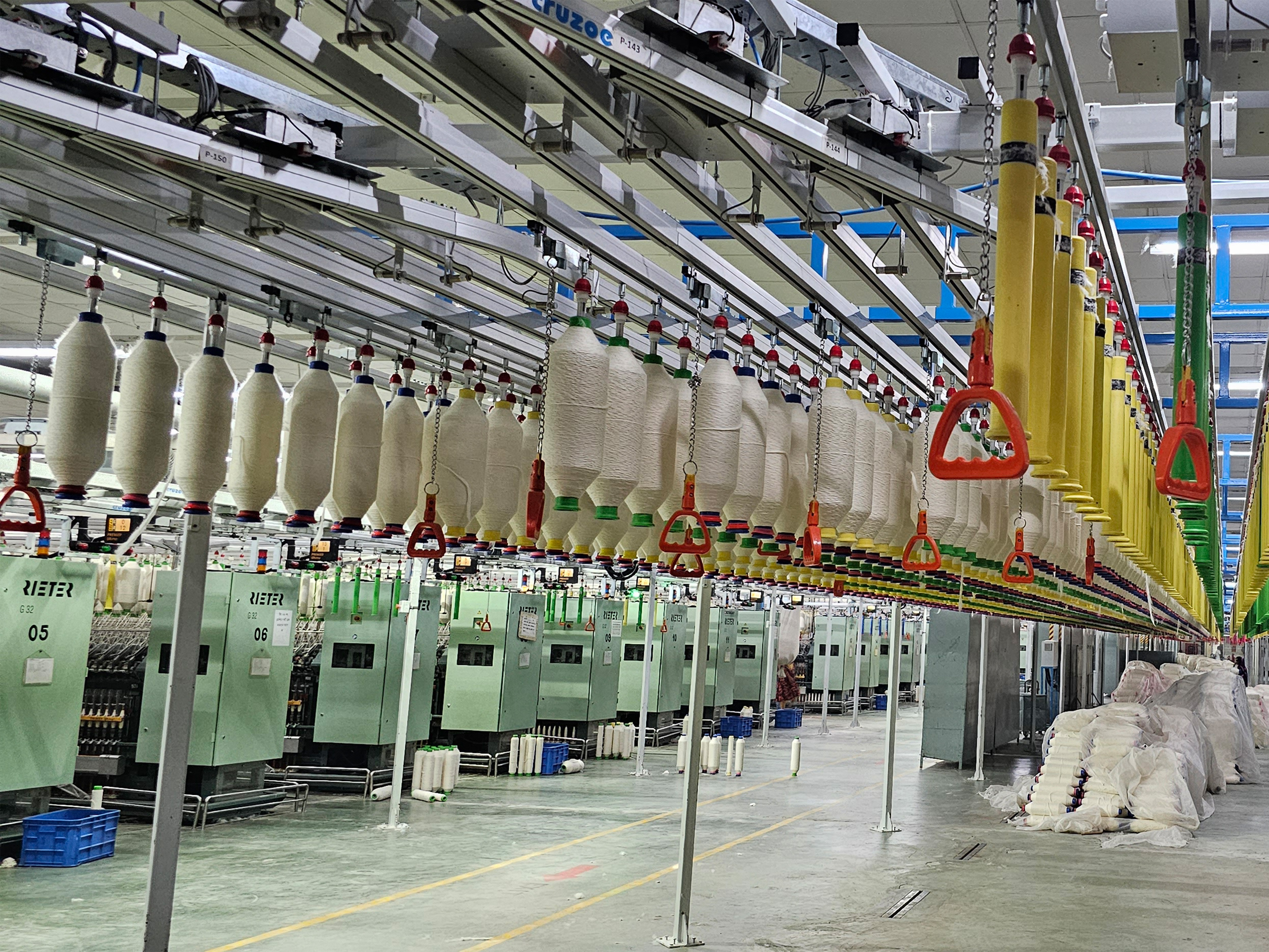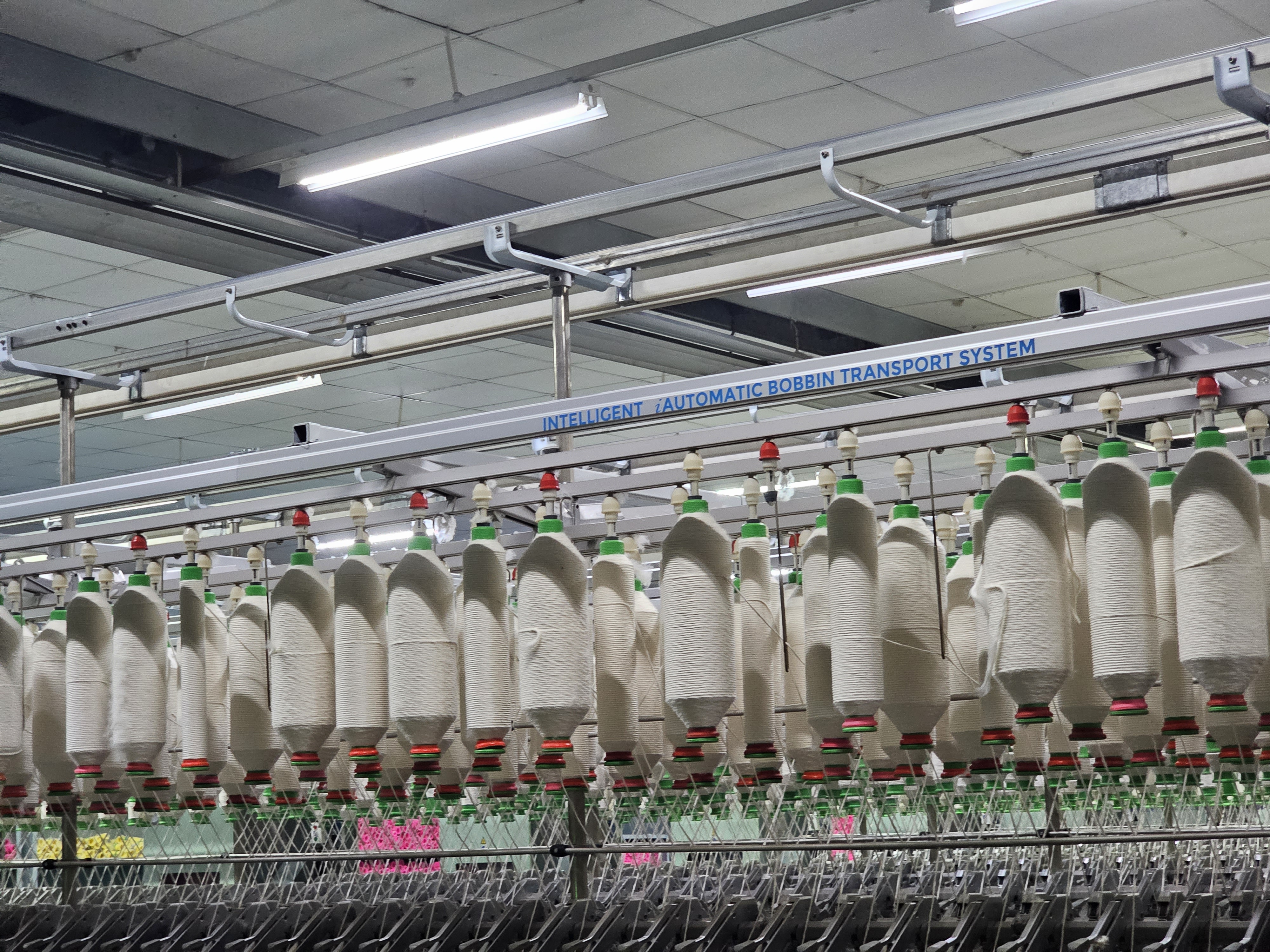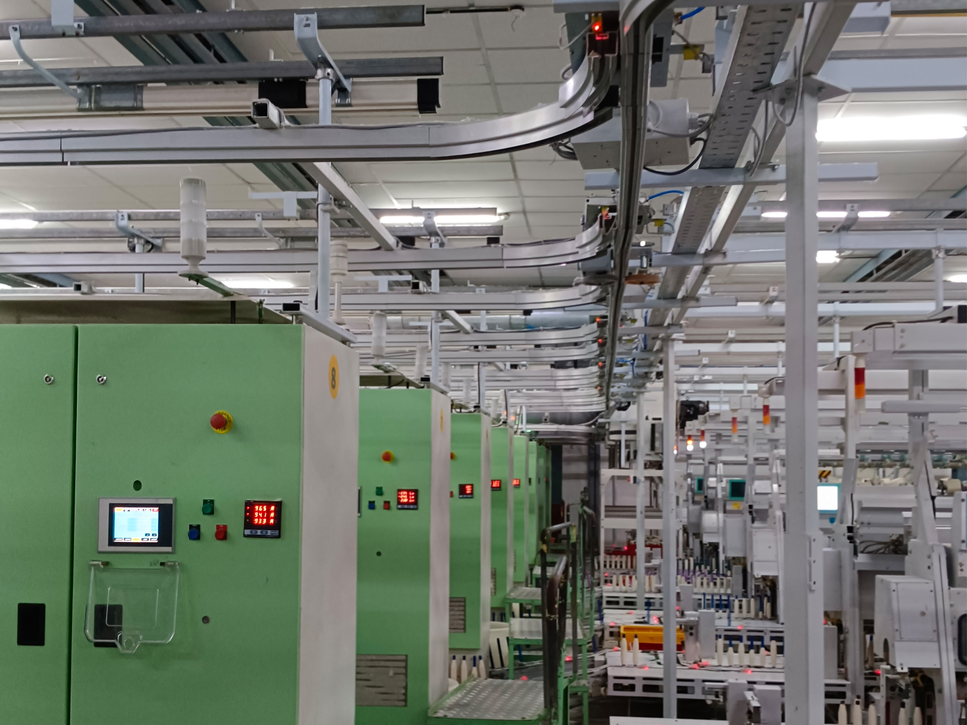 This system uses overhead transport and hence the ground floor is free from movement of trolleys and additional manpower to push the trolleys. It helps to improve quality of the yarn produced by reducing damages of the outer layer of the bobbins due to manual handling and trolley loading. .