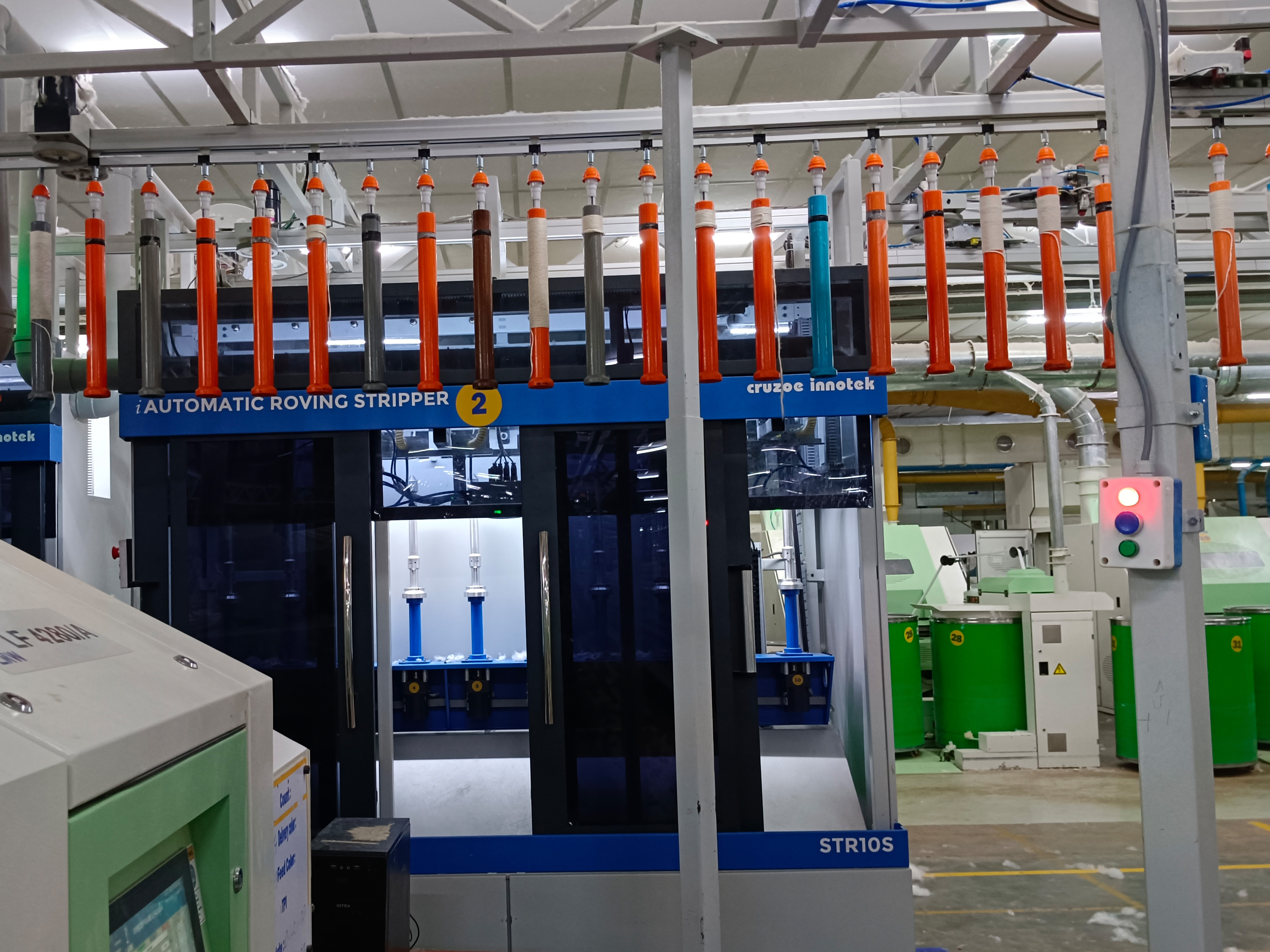 An innovative product for making the bobbin ready for production. This product removes the unwanted residue roving from the bobbin automatically.